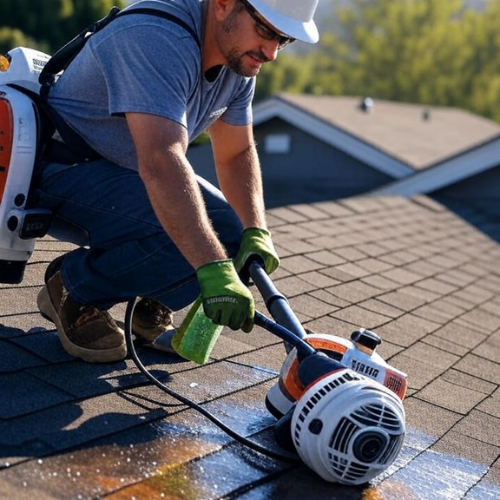 Gentle Wash – Low-pressure or soft washing methods prevent damage to shingles and roofing materials.
